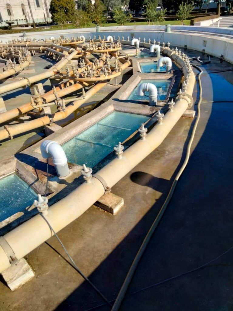 During the time that the requalification contract lasted, improvements and preventive maintenance were carried out at the level of cleaning and checking the working condition of the fountain, particularly the mechanical and electrical systems. From then on, the water element was maintained until its start-up.